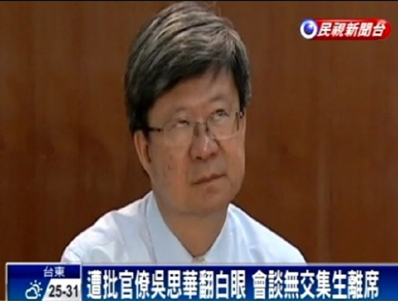 7位學生代表在國家圖書館與教育部長吳思華會面對談,教育部在現場架設電視同步轉播,雙方溝通無交集,上圖是教育部長吳思華翻白眼鏡頭。